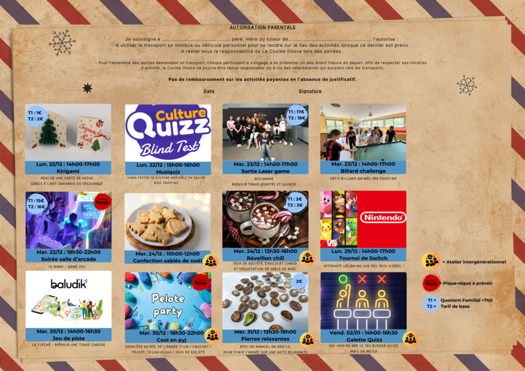 - Se munir de son attestation de quotient familial CAF/MSA/etc pour bénéficier du tarif 1